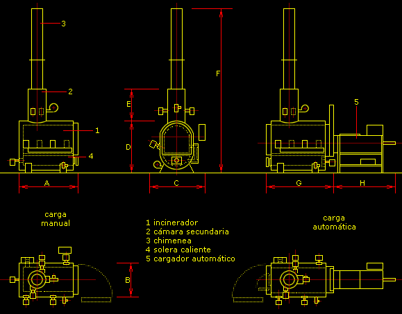 Para la combustión y enfriamiento se prevé el suministro de ventiladores centrífugos (carga automática) manualmente ajustados o automáticamente, que suministran aire para las boquillas estratégicamente colocadas a todo lo largo de las cámaras de combustión para asegurar condiciones óptimas completas. |